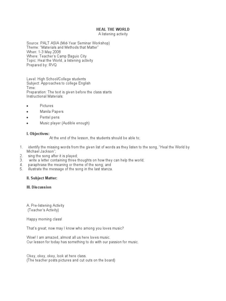 Heal The World Michael Jackson 1105 Verb Noun